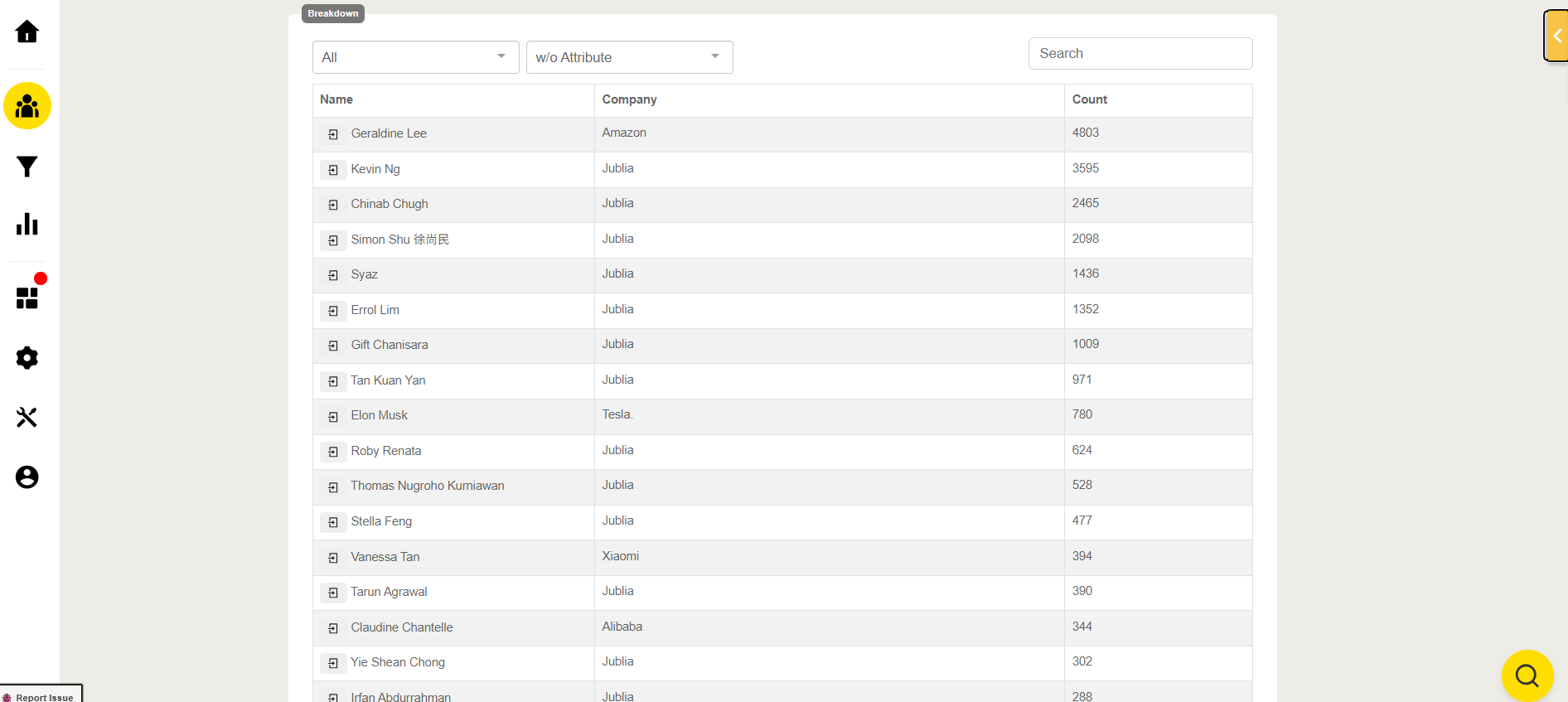 Group-based Data with/without Attributes: The data is categorized into different audience groups, with or without specific attributes (e.g., attendee type, company), allowing you to tailor your approach and content to specific segments