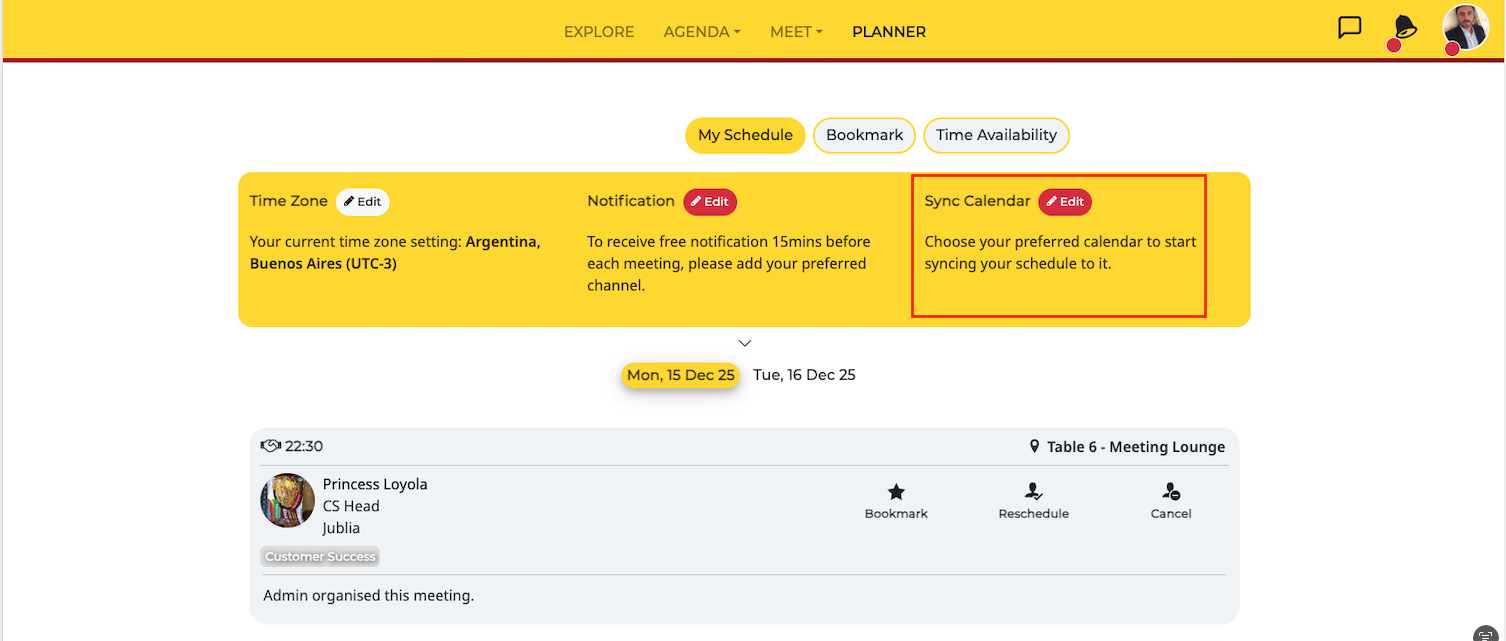 Managing your time and meetings effectively in our engagement hub is crucial for making the most of your networking opportunities. Here are some tips on how to adjust your availability, check the location and time of your meetings and sessions.