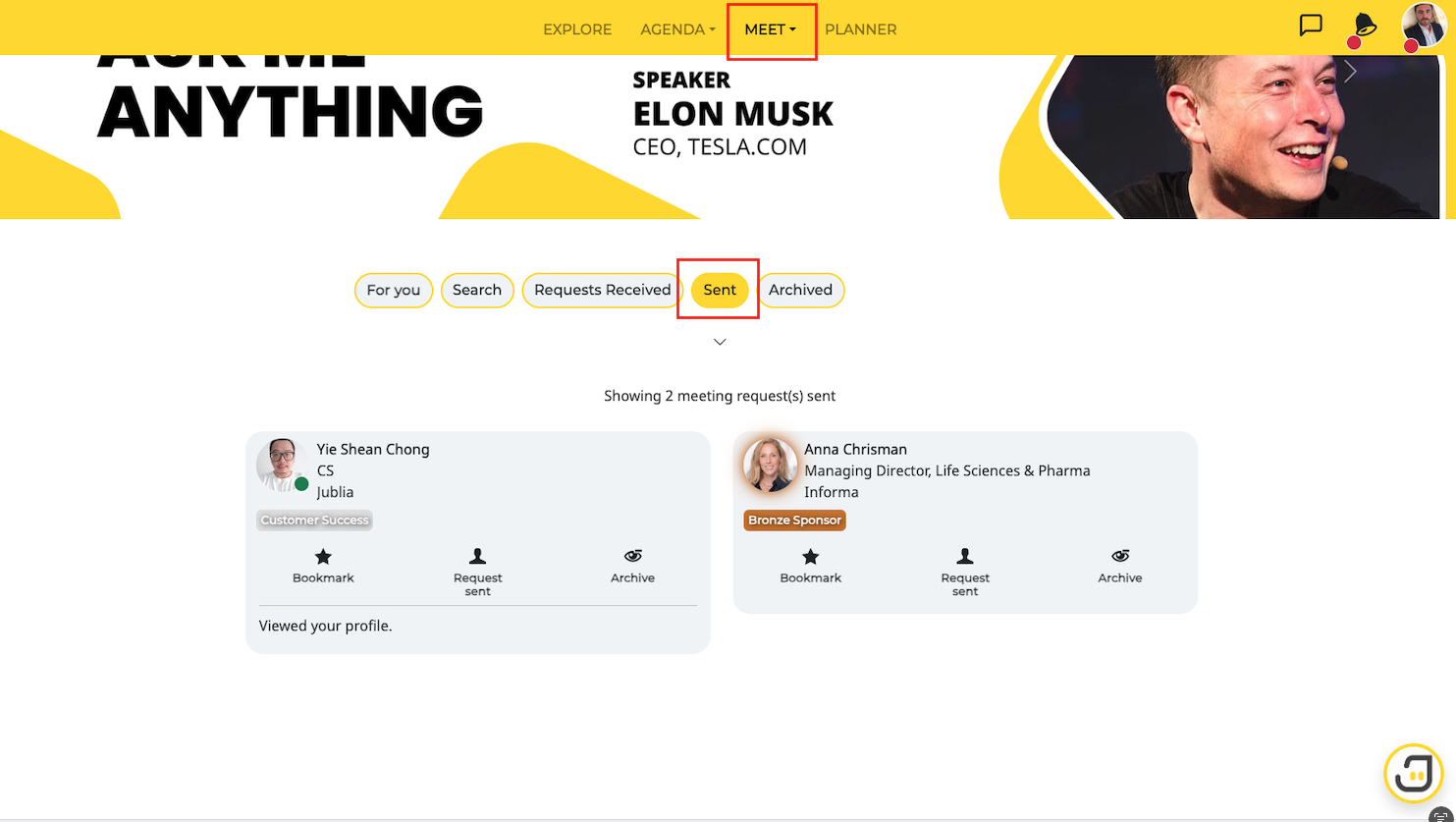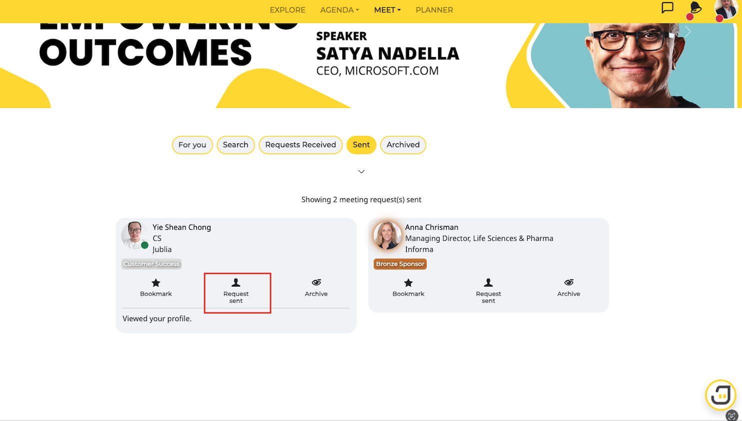 Note: All meeting requests require a mutual confirmation from the other party (unless otherwise stated by the organizer) and they will be reminded on a timely basis (depending on their email frequency), about your requests to them. This means that you should send out your requests early so that the event concierge will have a longer period of time to follow up on your requests to them.