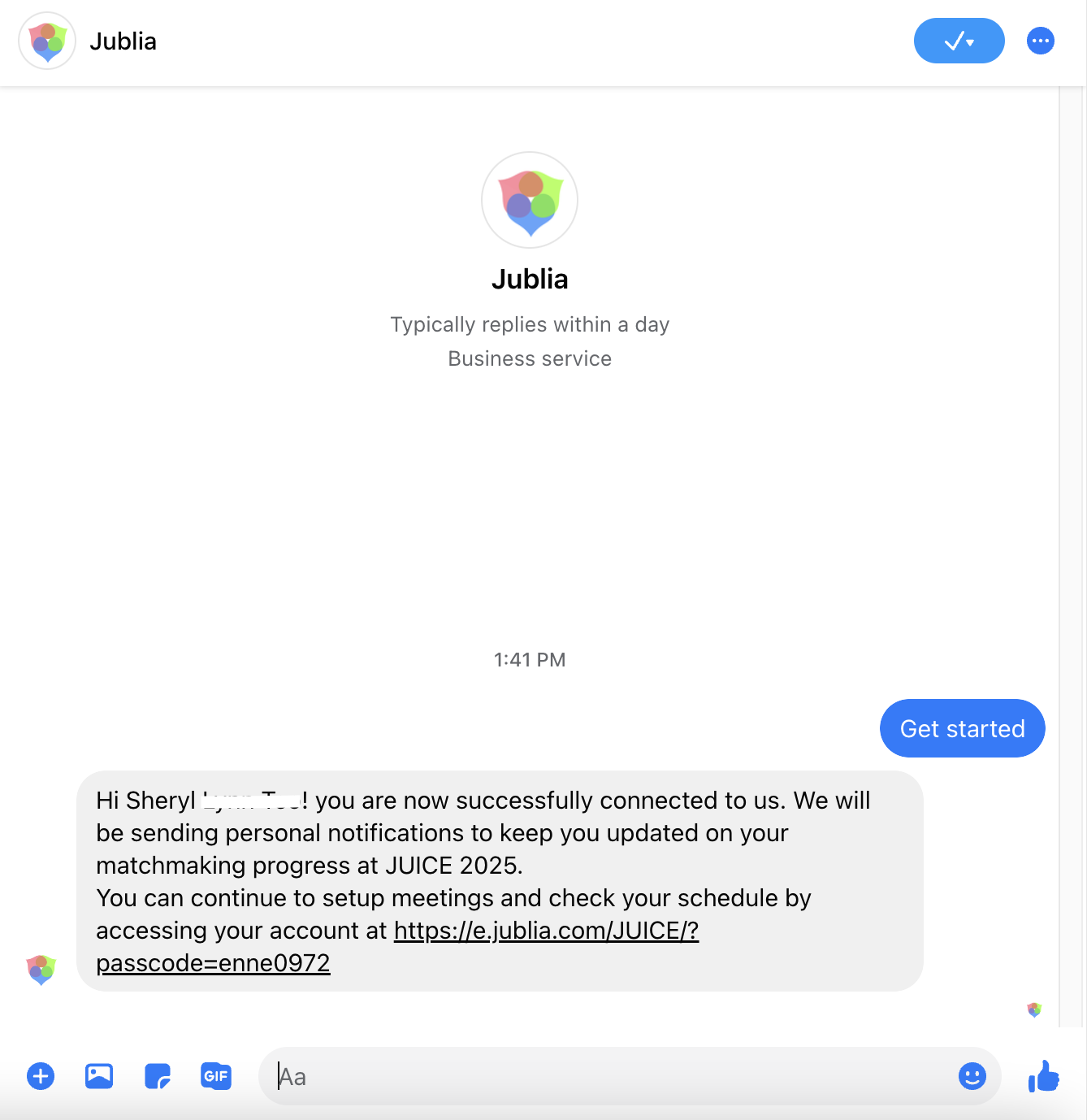 4. You will receive an automatic message when you are successfully connected.