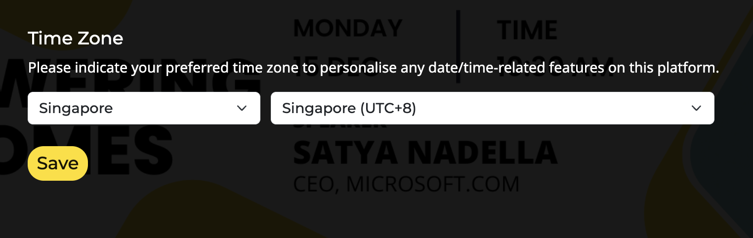 Time Zone (only available for virtual events)