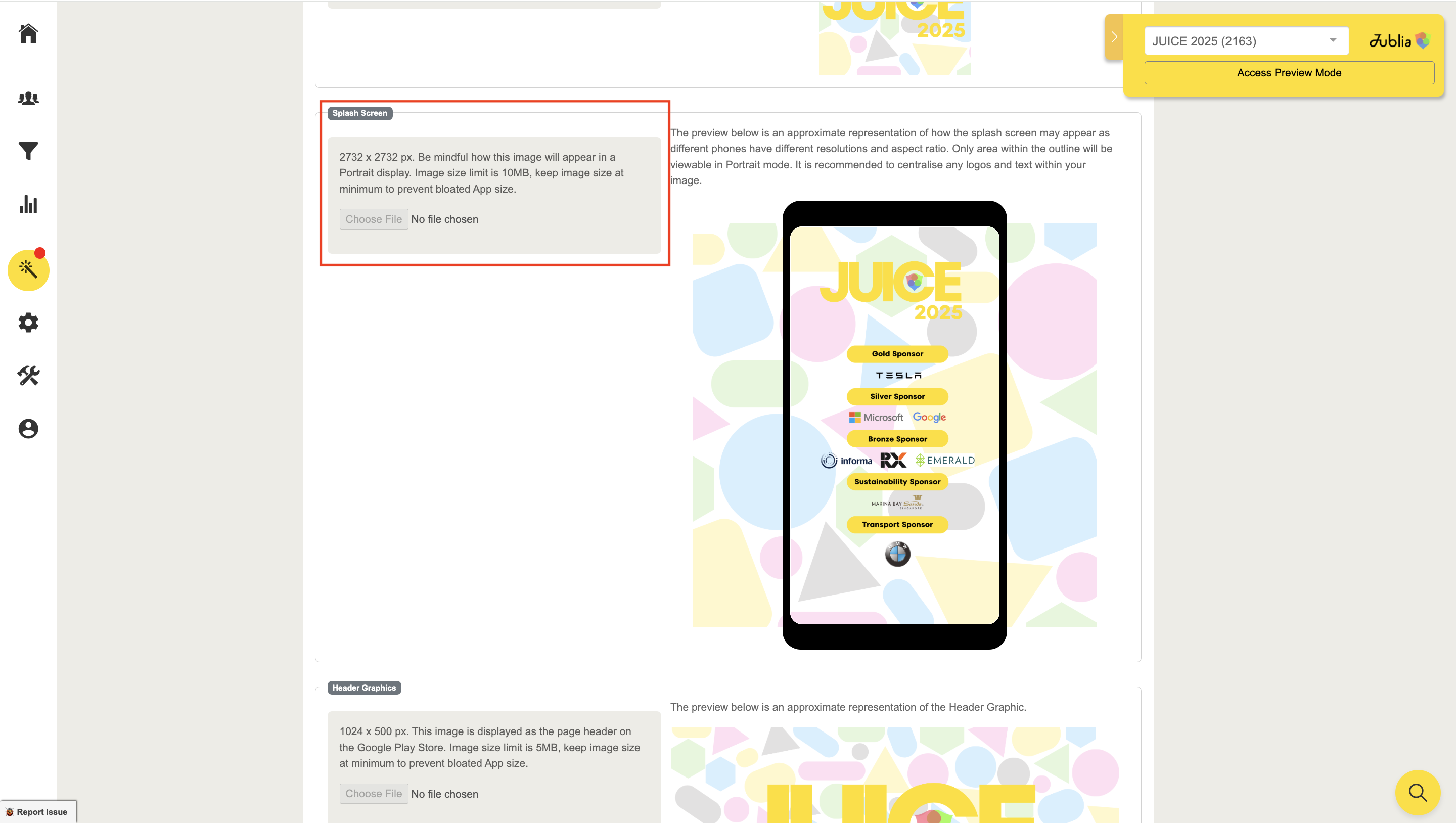 Welcome attendees with an immersive splash screen that reflects your event’s theme.