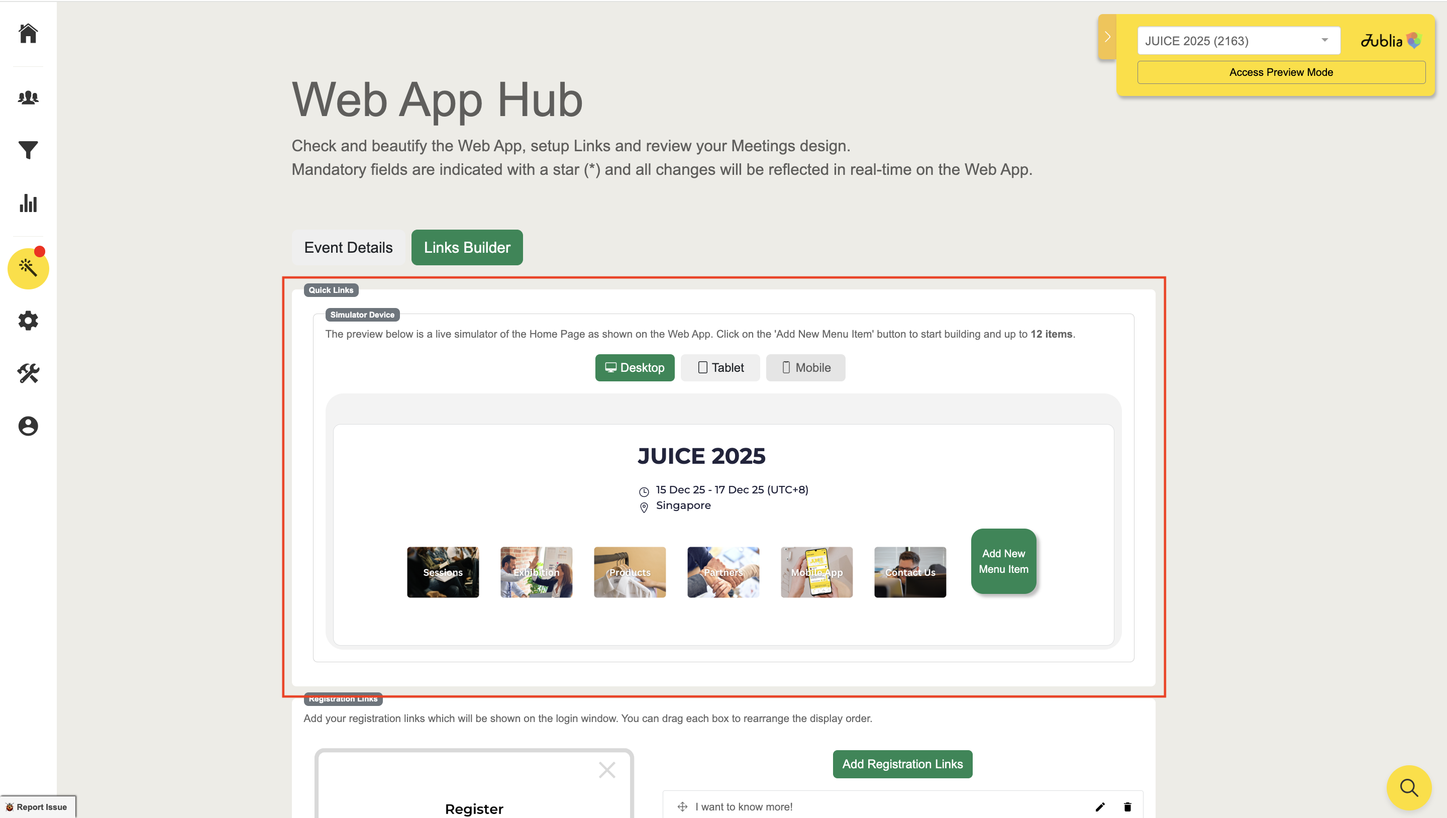 Add up to twelves custom shortcuts in the event lobby to boost engagement.