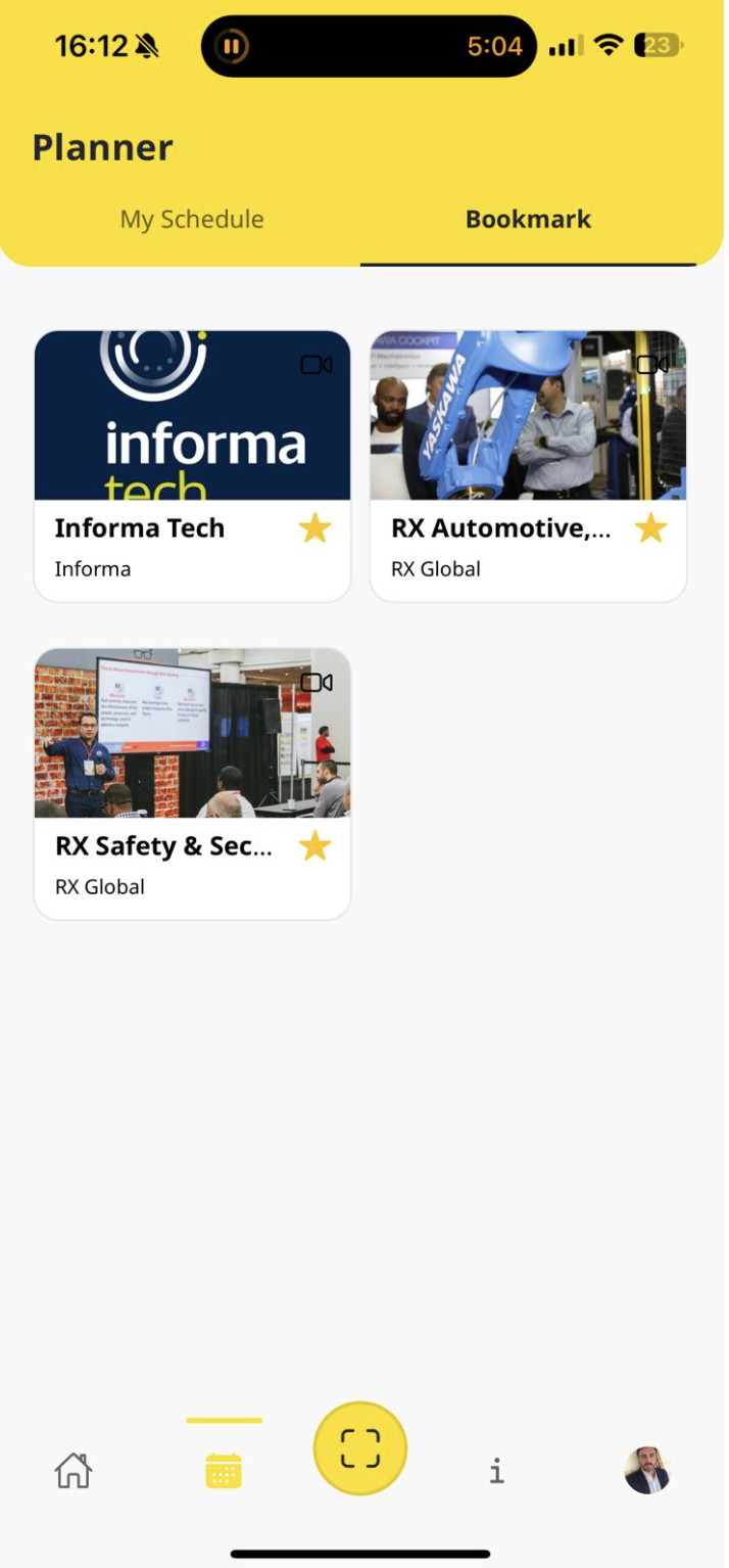 Return to the Home menu, go to the Planner via the bottom navigation bar, and select the Bookmarks tab to see your bookmarked products or company profiles.