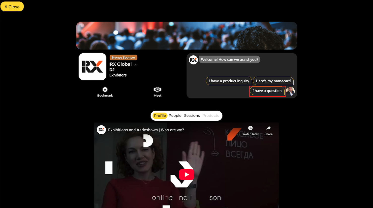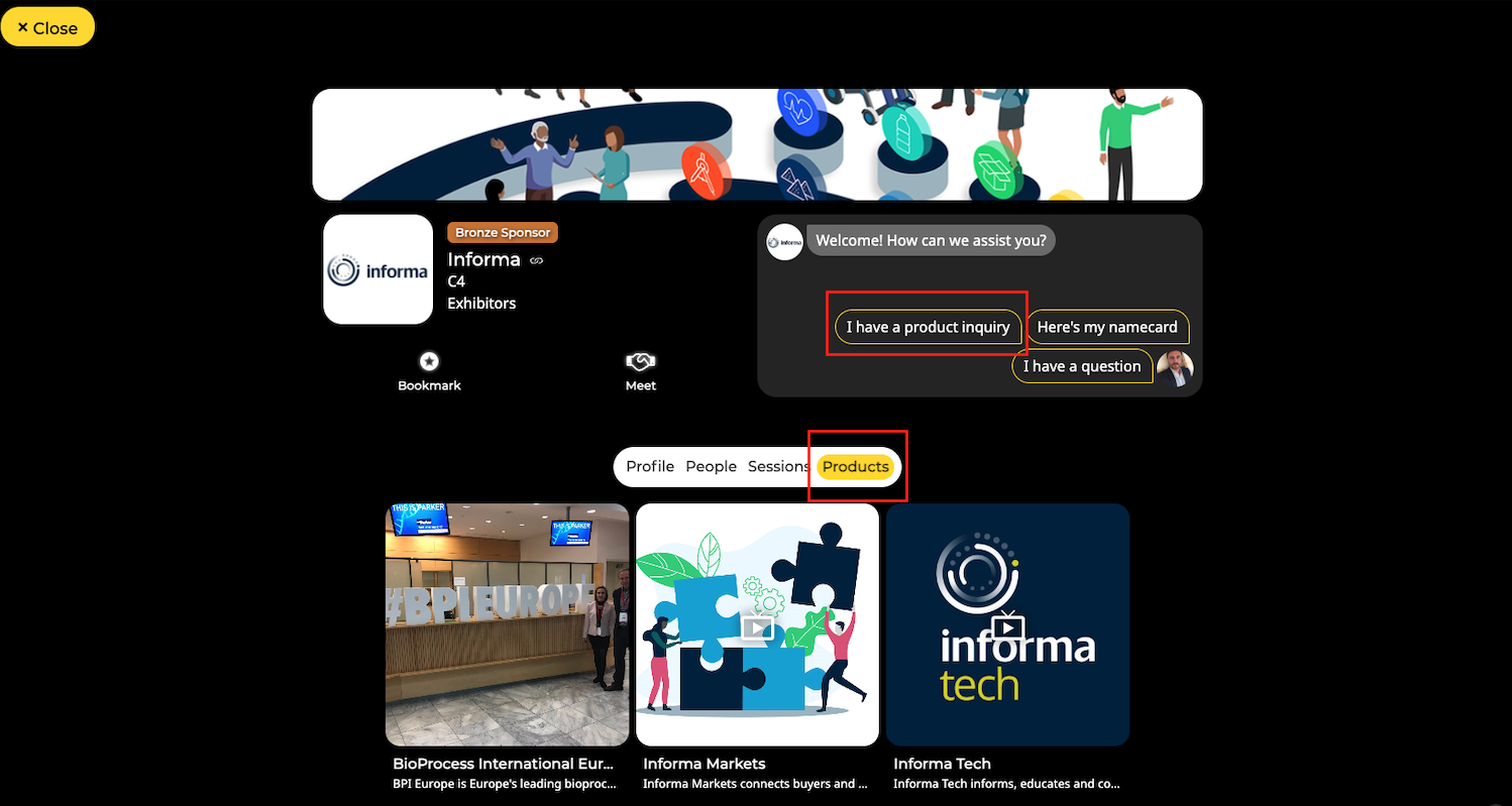Access the Exhibitors menu to view the list of all companies in the app.