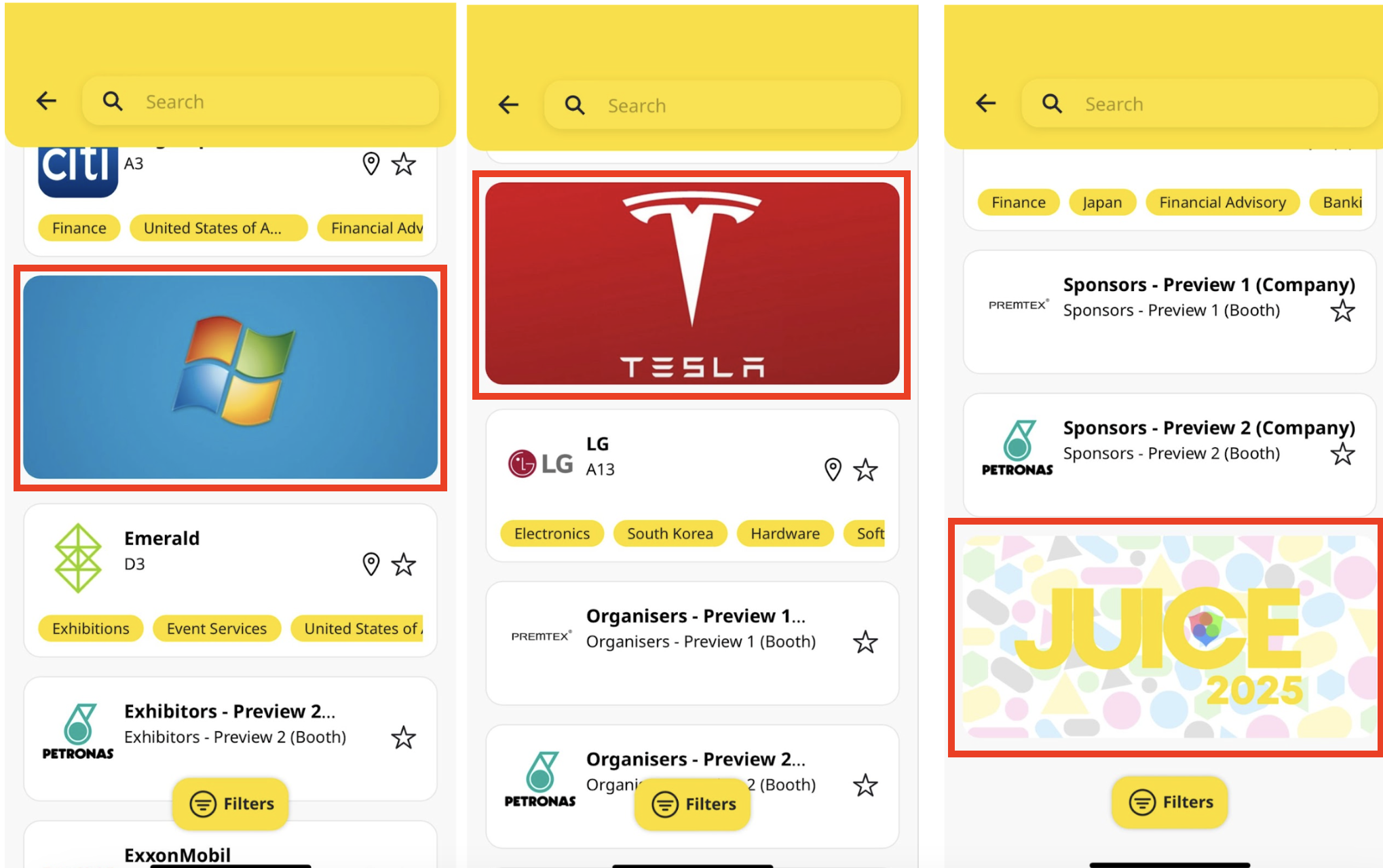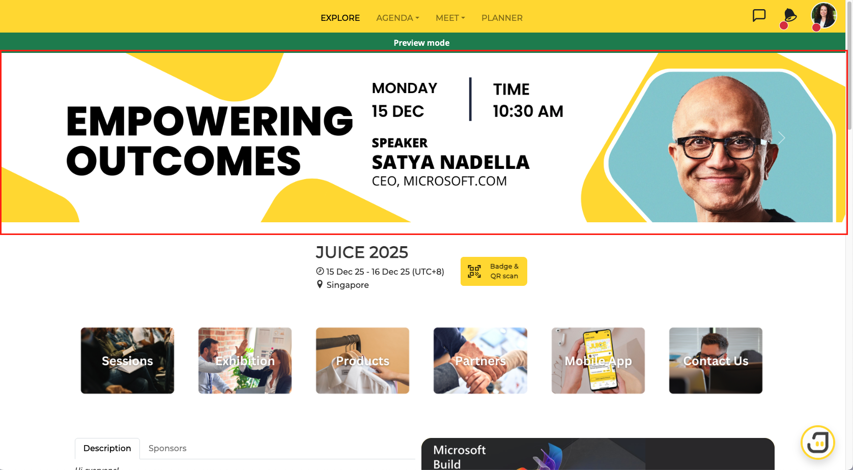 In-Between Banner will appear in between the listing of Agenda, Companies, and also Products