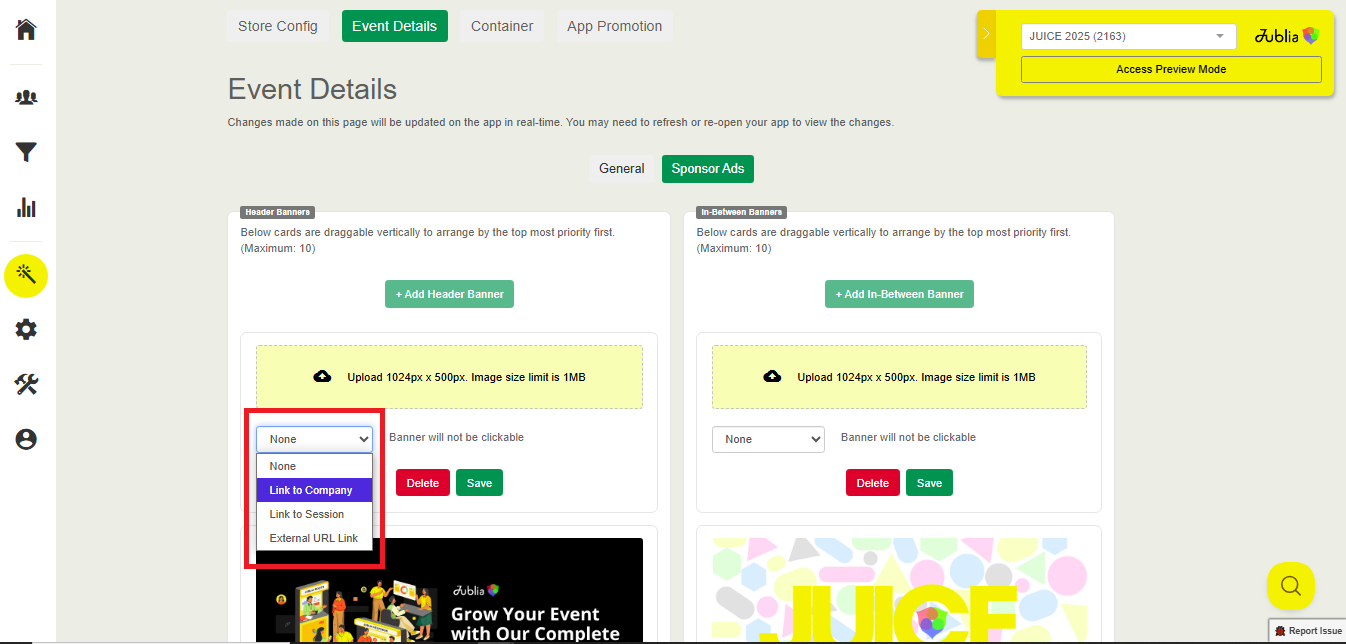Improve your banner interactivity by adding a link to Company, Session, or external URL