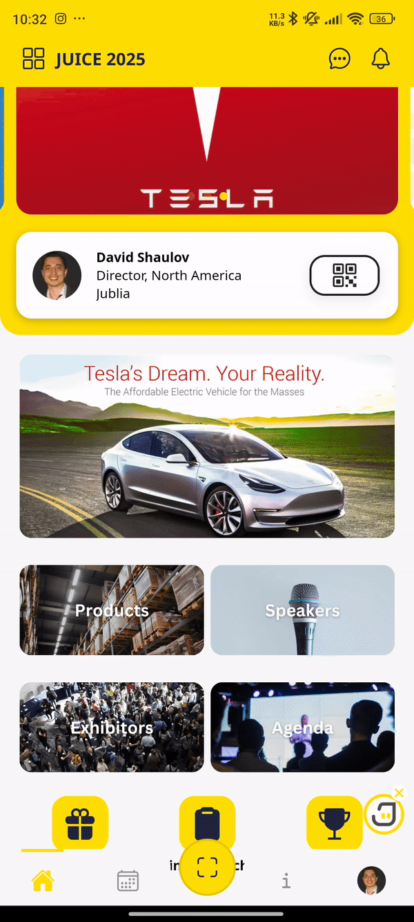 In the Home menu, access the Agenda menu to view the list of sessions.