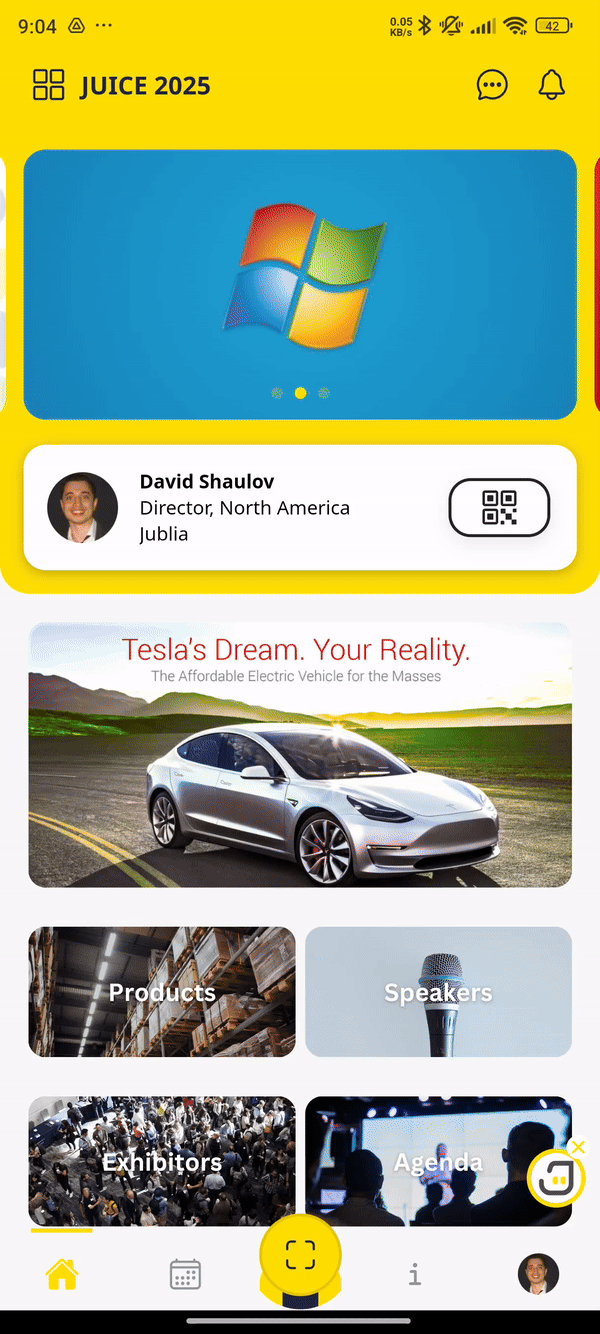 Tap on a company to view its profile details. In the profile, tap the location pointer to get directions to the booth location.