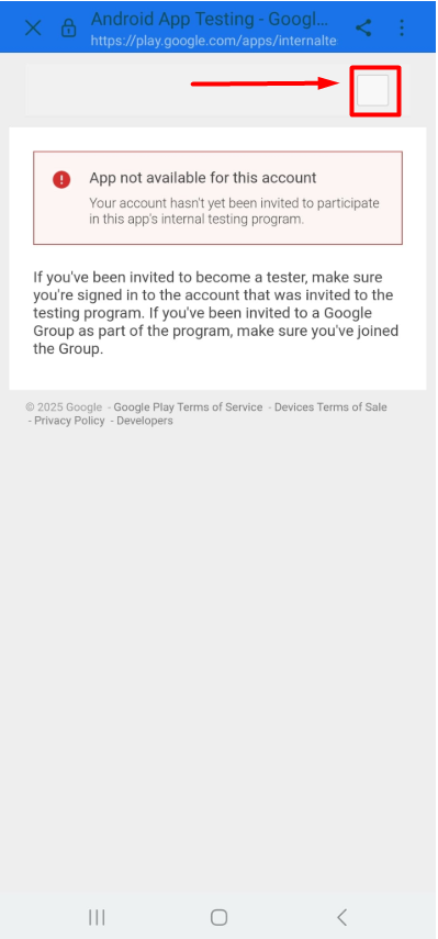 You will receive an Internal Testing link from our Tech Success Manager via email. Click the link to accept the invitation and download the Test App.