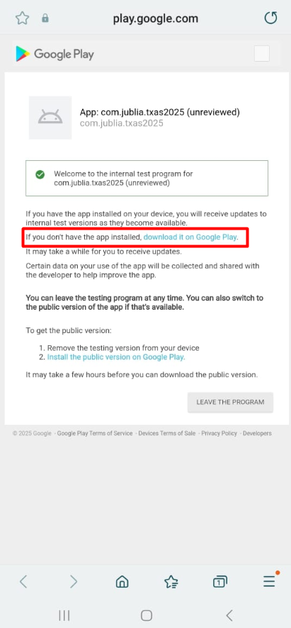 Once you've successfully accepted the invitation, click on the "Download it on Google Play" link.
