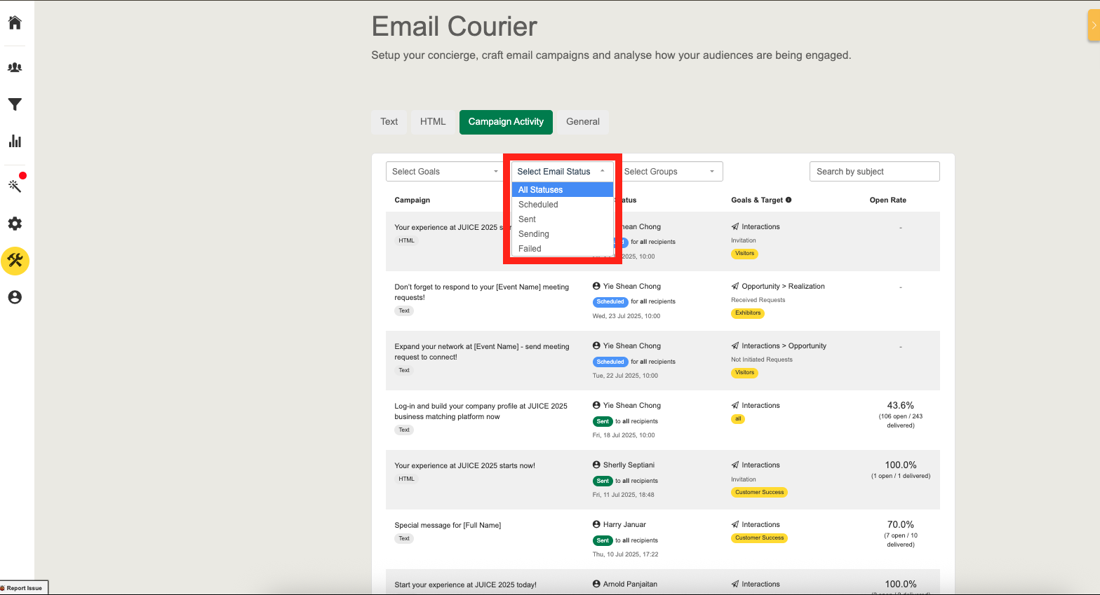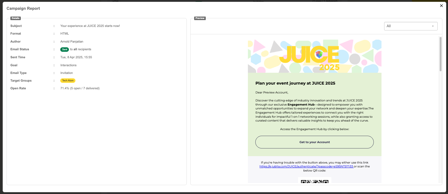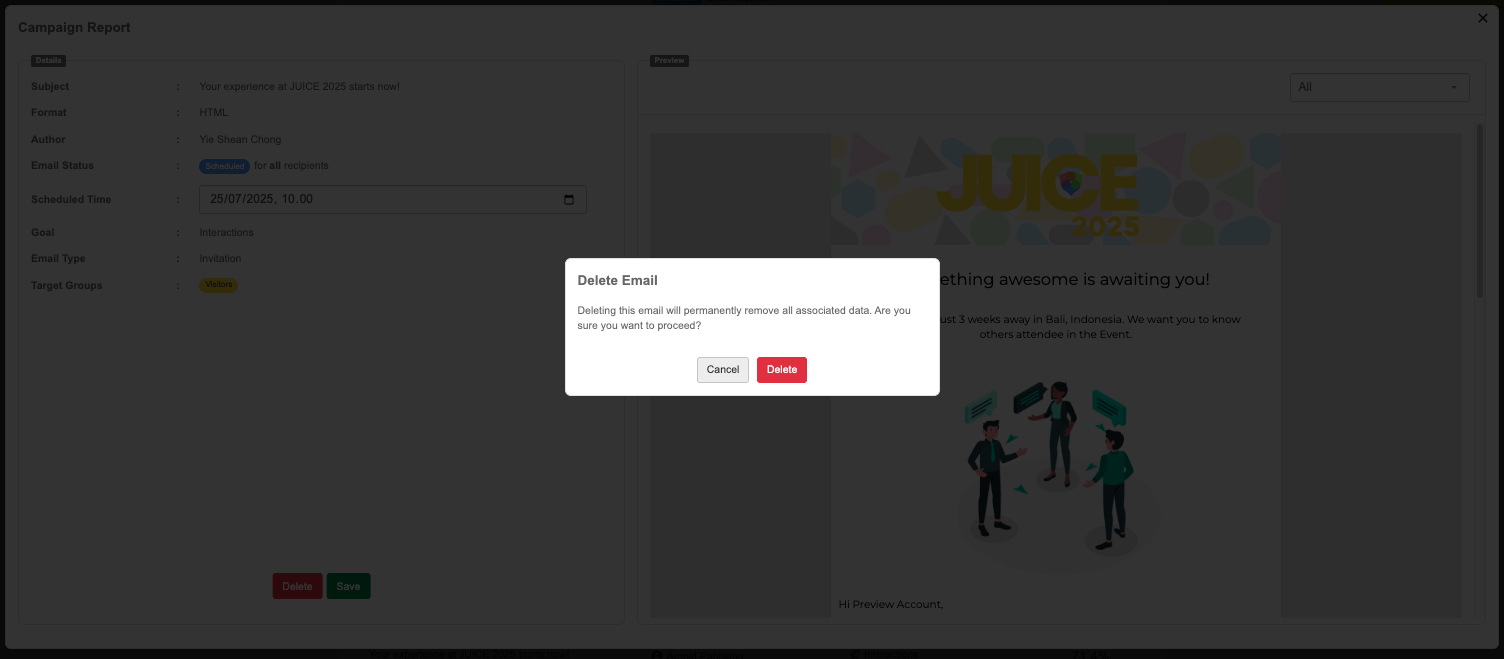 Effectively managing your email communication is essential to driving engagement before and during your event. The unified Campaign Activity helps you simplify your workflow by consolidating scheduling, logs, and engagement data into a single, centralized interface.