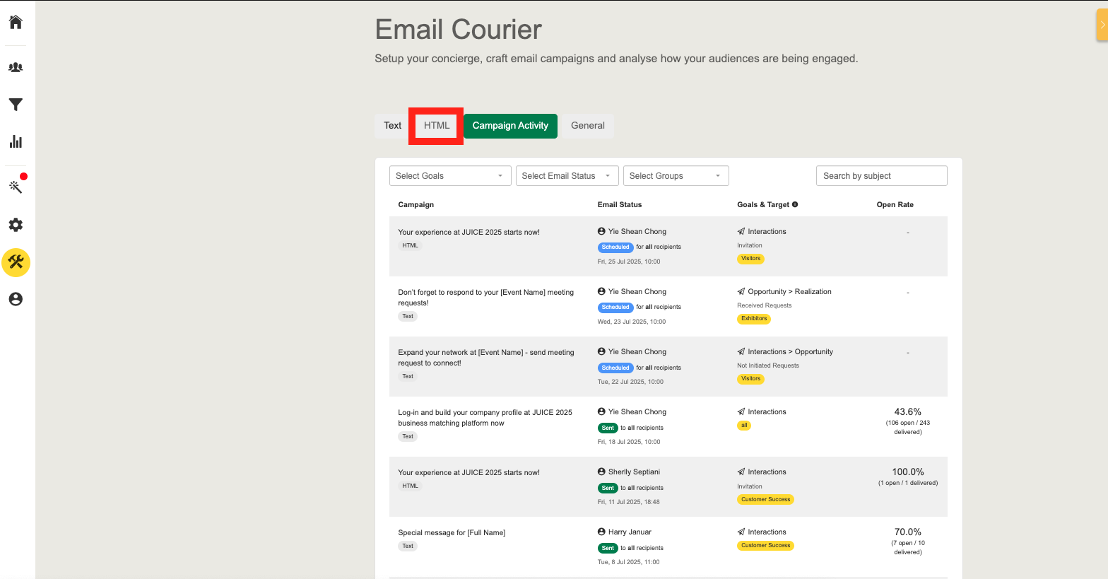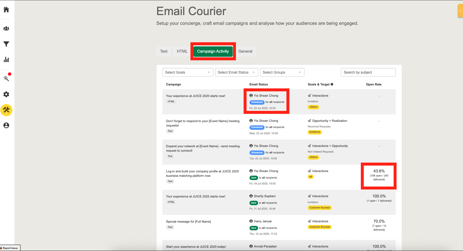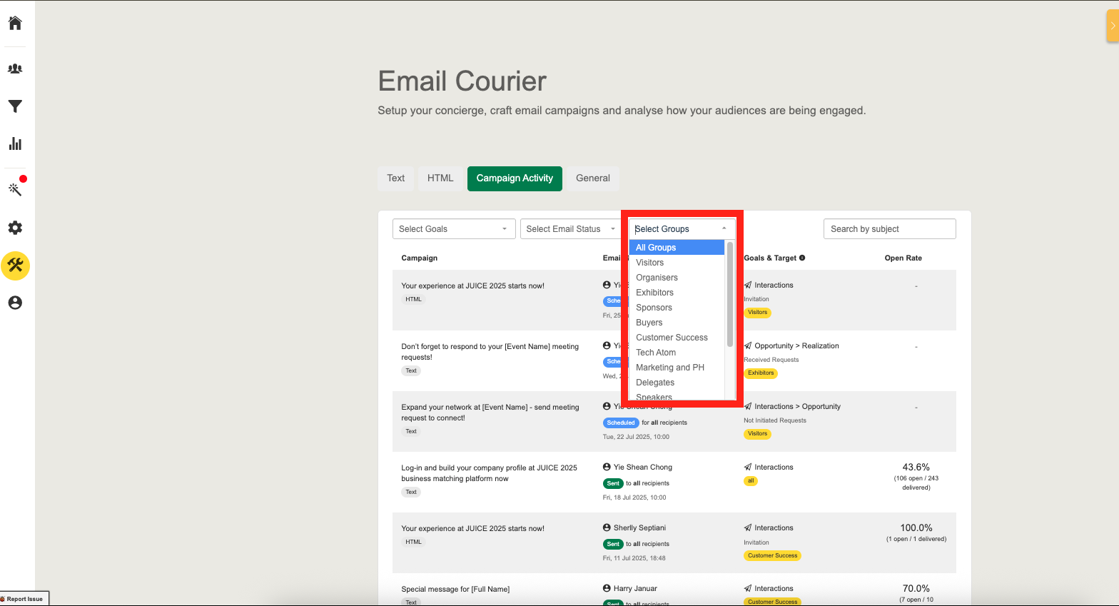 Effectively managing your email communication is essential to driving engagement before and during your event. The unified Campaign Activity helps you simplify your workflow by consolidating scheduling, logs, and engagement data into a single, centralized interface.