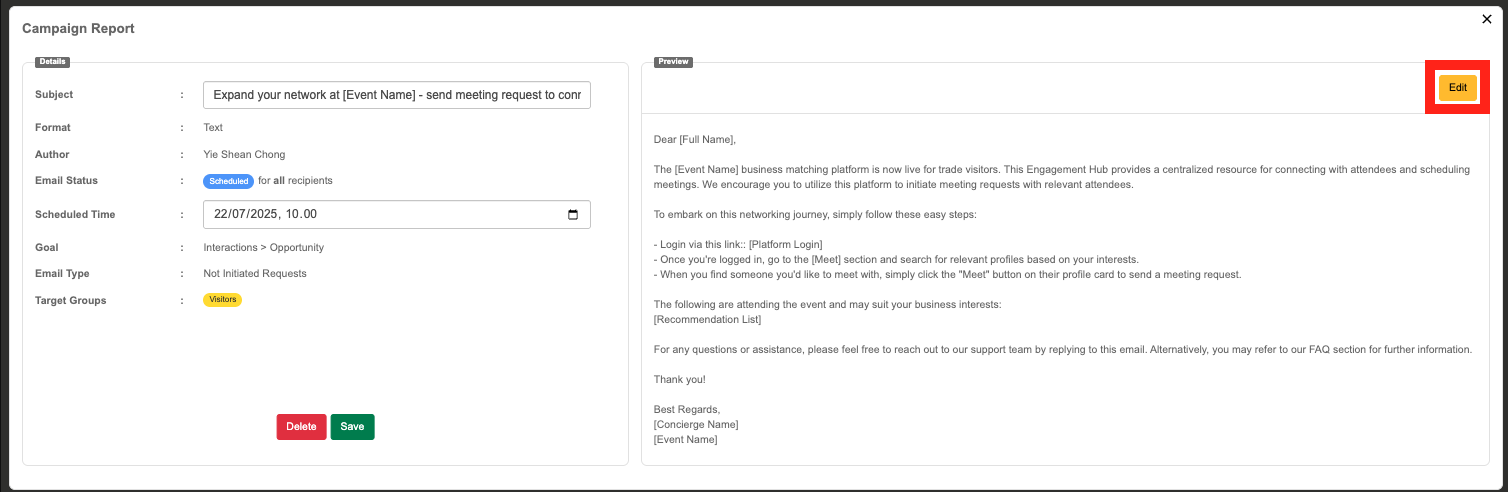 Click the Edit icon to update the email content.