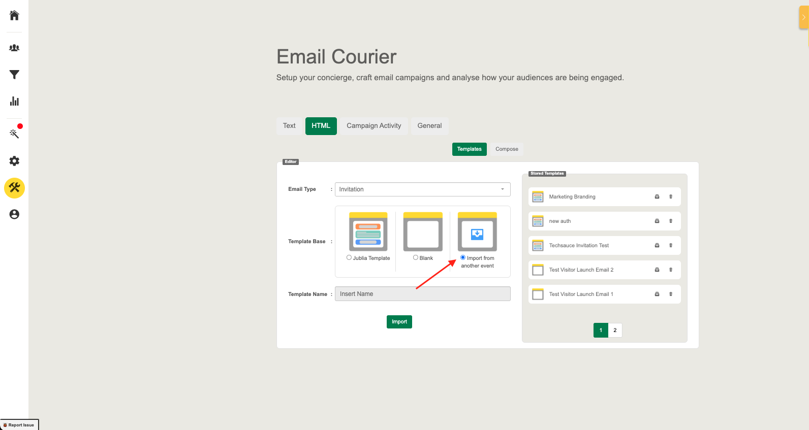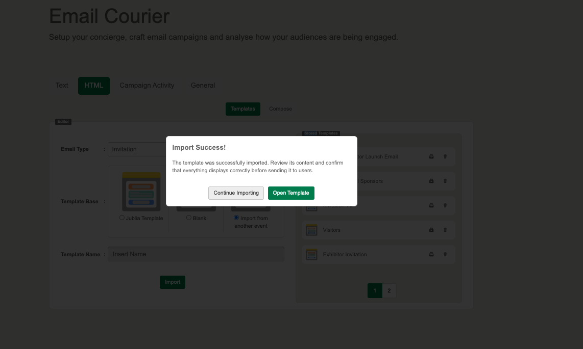 Managing email campaigns efficiently often requires reusing proven templates. With the new Import Email Template feature, organizers can now easily import and clone HTML email templates across events, helping maintain consistency and save time when preparing communications.