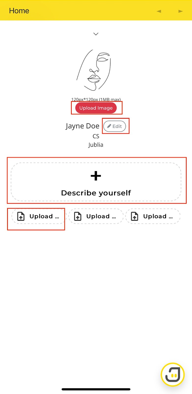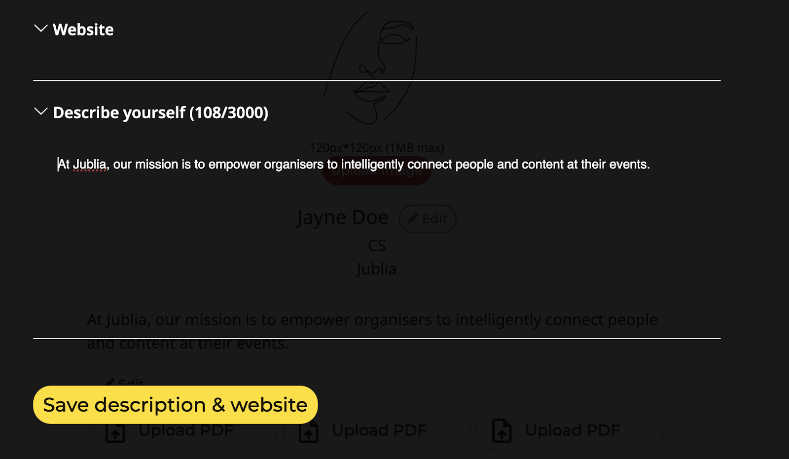 Modify your profile details as needed. This includes uploading an image, updating your name, job title, and writing a description about yourself.