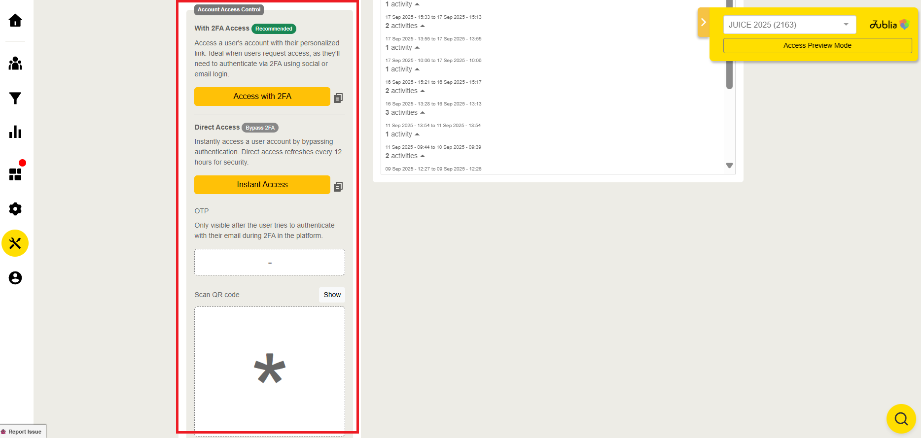 Instant Access: A link that bypasses the 2FA process.