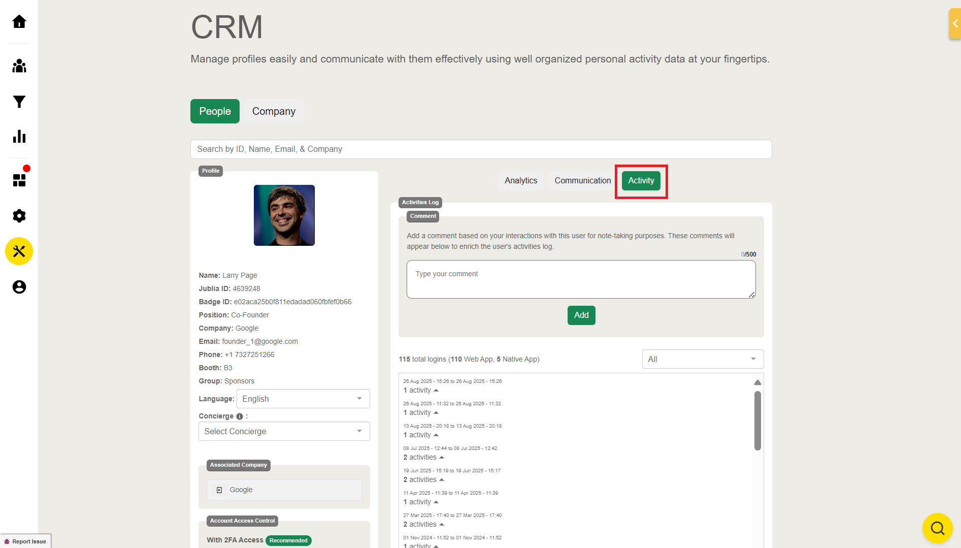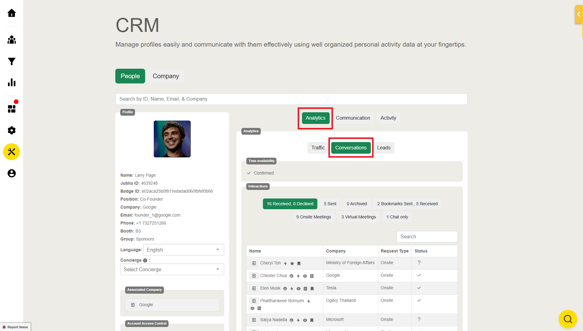 Concierge: Set up a concierge to help manage attendee profiles. Concierge can add notes under the "Activity" tab on a attendee's profile card to track the status of contacted attendees and record other important information.