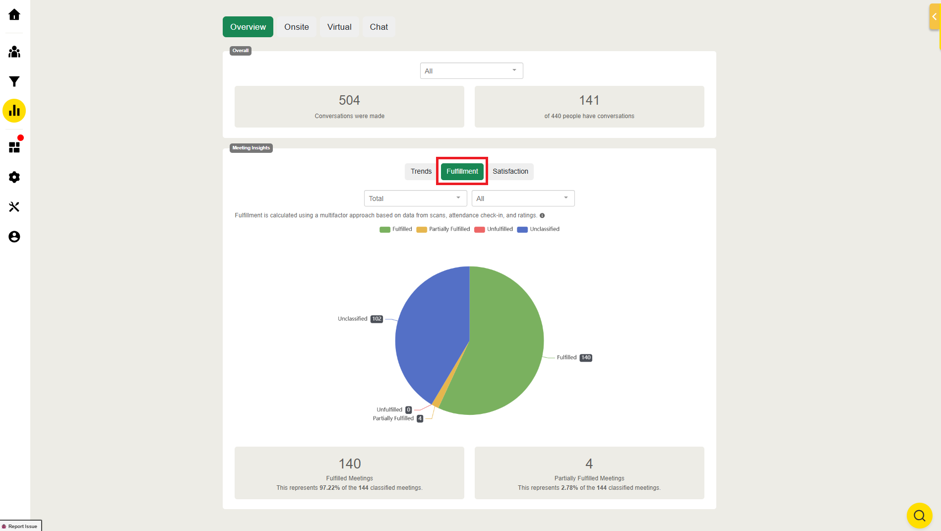 Check meetings fullfilment under the "Fullfilment" tab.