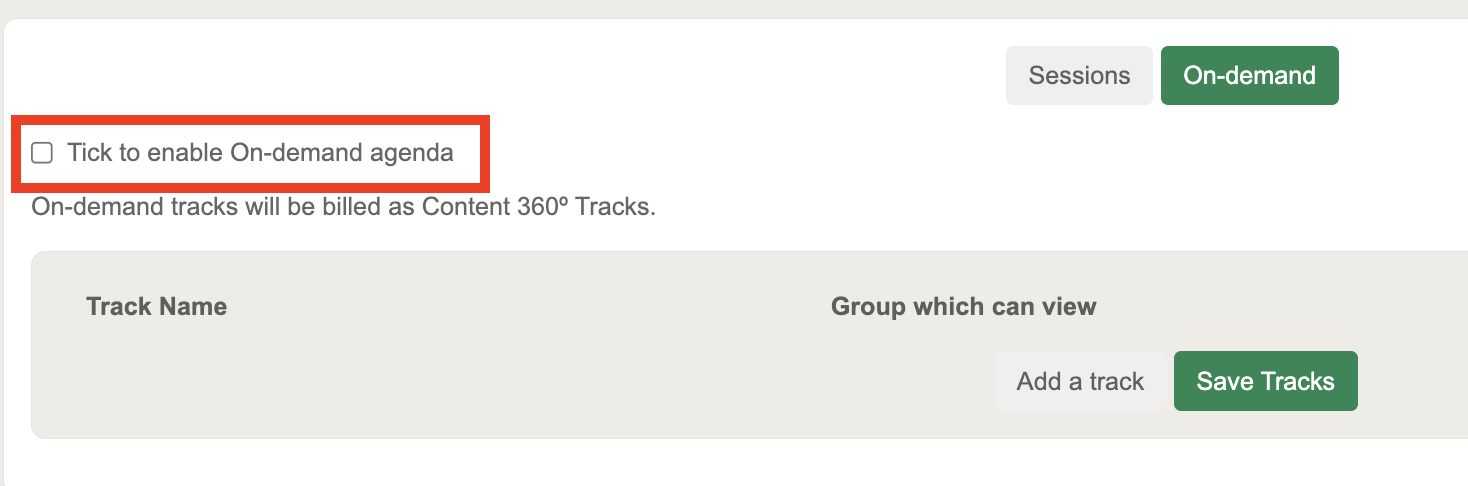 In the Track section, you’ll also see an On Demand button. This allows you to create on-demand tracks that participants can access at any time.