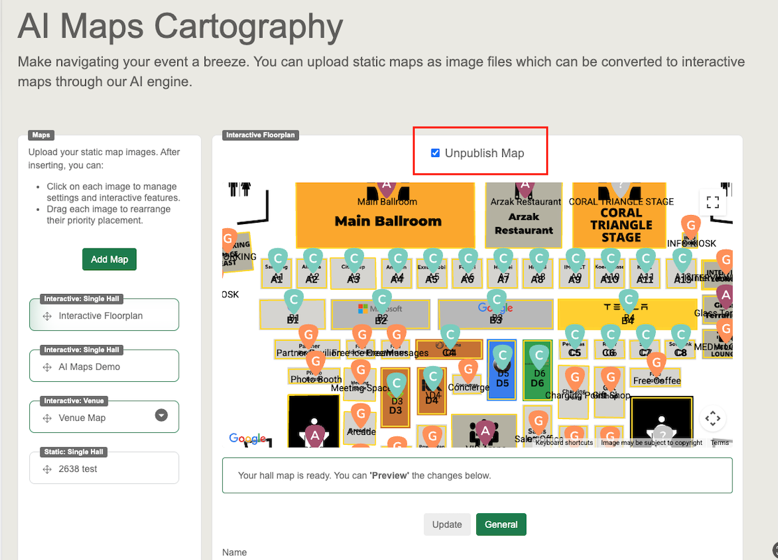 Single Hall Map: Choose this option when you have only one map for your event.