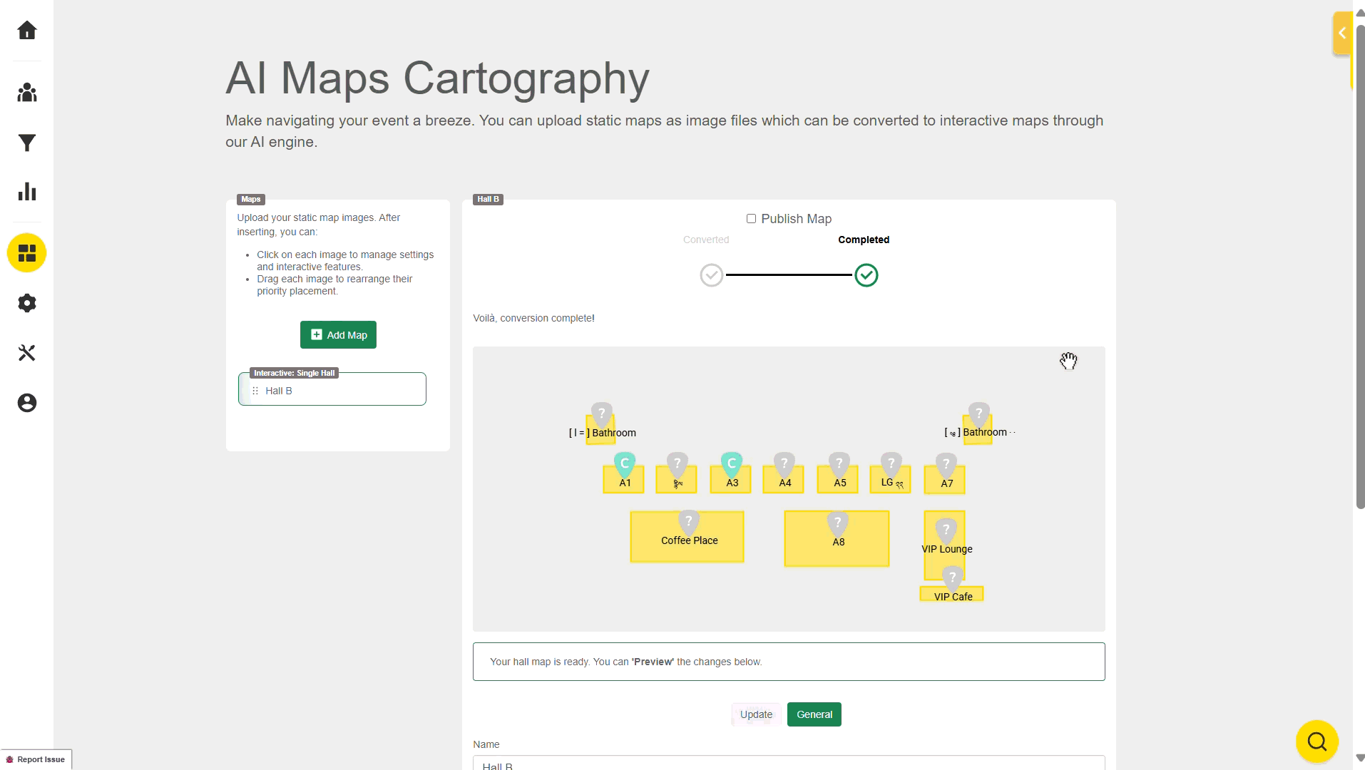 With maps managed, the AI Maps would be handled by the Jublia team. For further details, talk to our solution specialist.