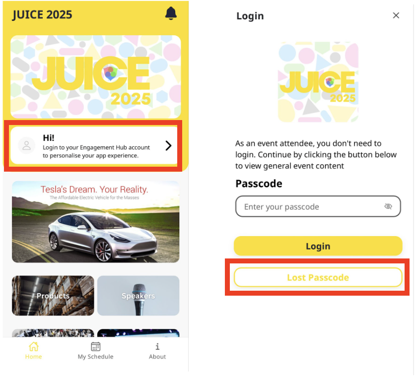 If you forget your passcode, simply click on "Lost Passcode" and input your email address, it will be promptly sent to your email.