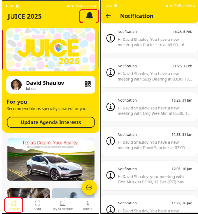 You can check if there is any pushed notification to you by clicking the mail icon in the home page.
