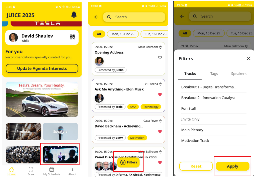 2. Finding any sessions by the date or whether it is On-Demand or not.