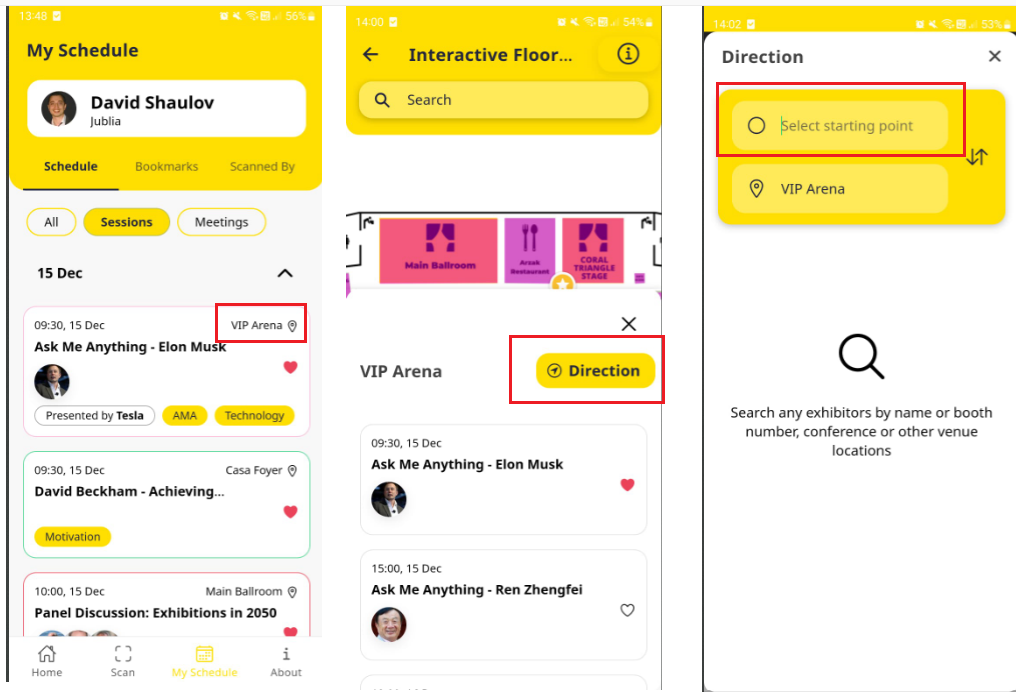 Simply tap on the Location pointer of the session and it will bring you to the floor plan page to show you where the session is being held.