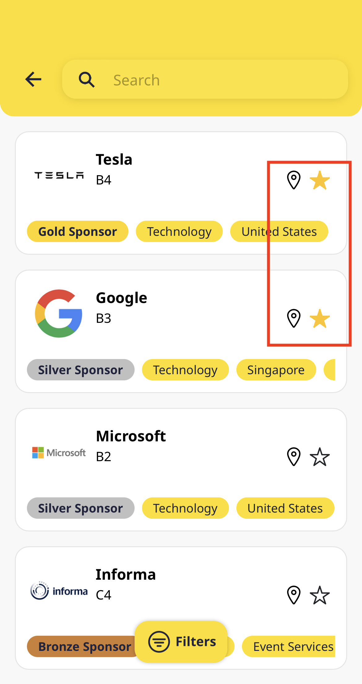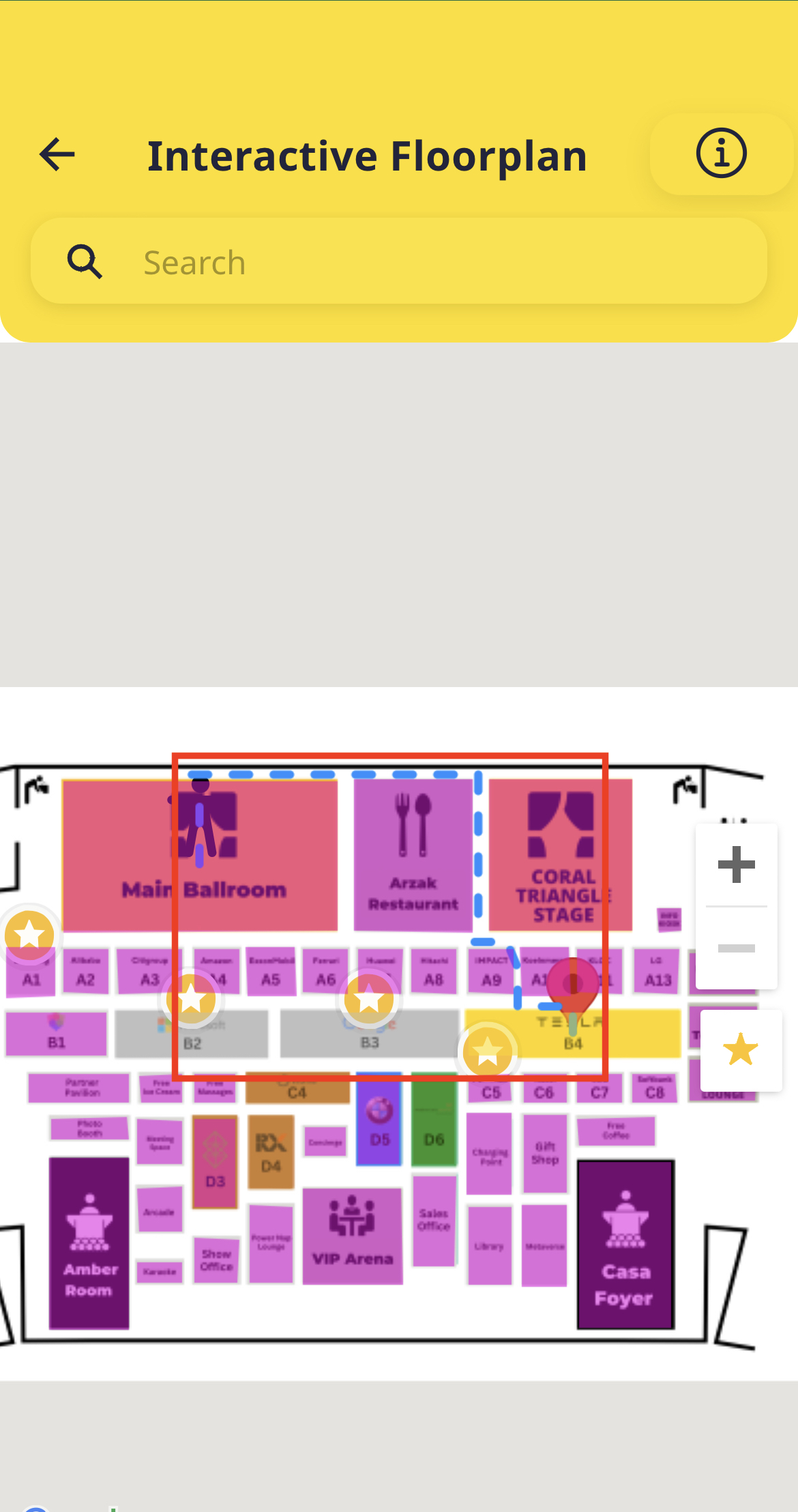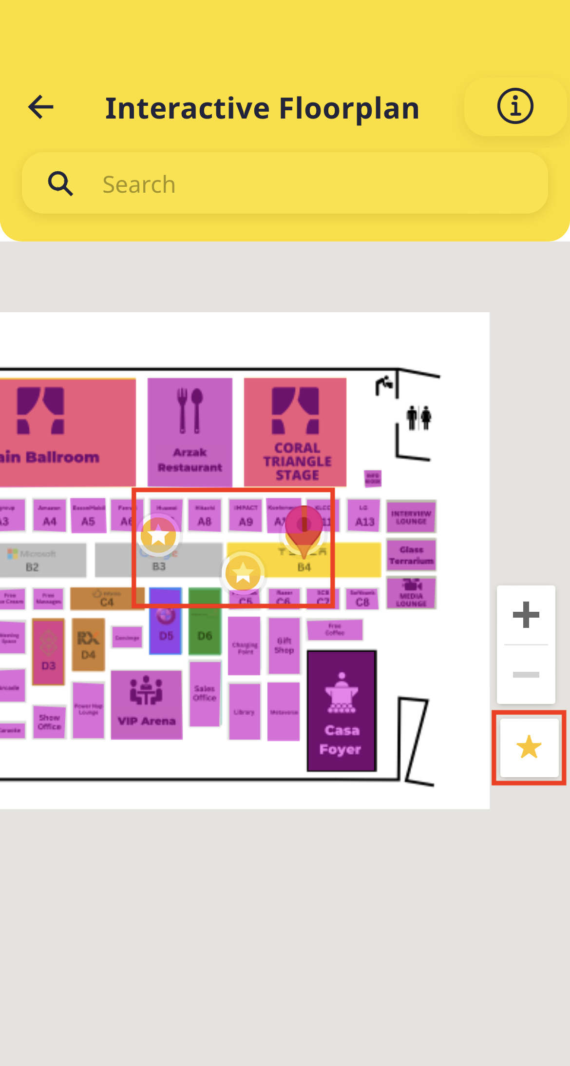 Aside from routing, you can also unlock our Bookmark POI feature. This allows you to see "starred" locations based on your favorited booths. Here's how you can use it: