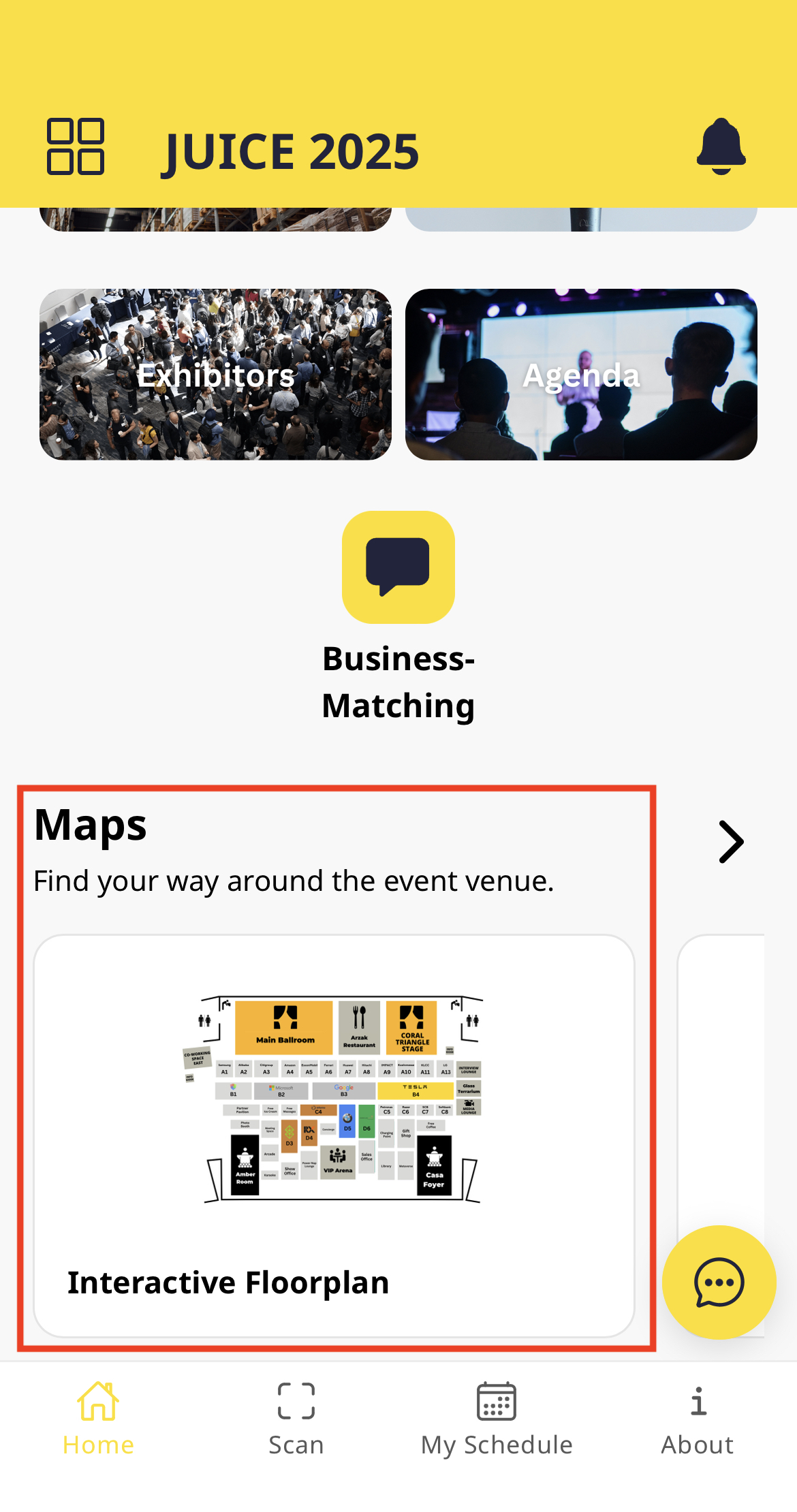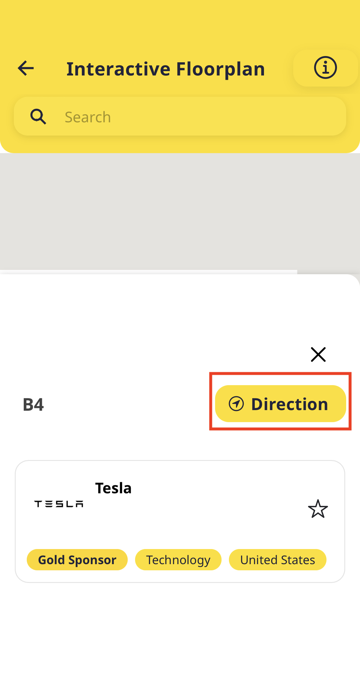 The app will then display the location of your bookmarked company on the floor plan.