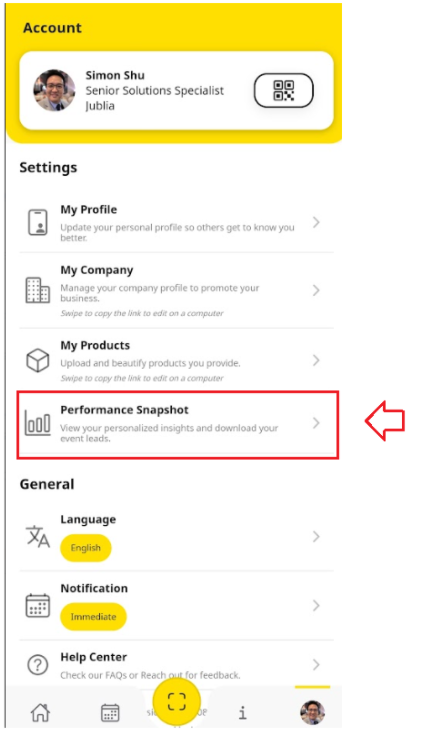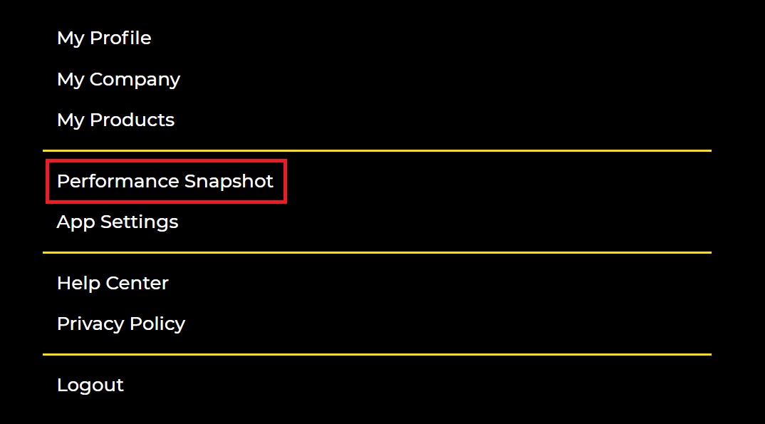To view the Performance Snapshot on your profile, simply click on your profile at the top right corner of the page and click on the Performance Snapshot.
