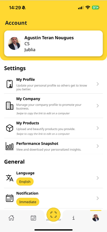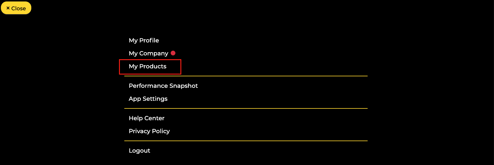 Click on the bottom right button on the Native App and select My Products.